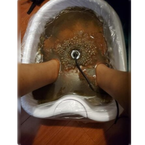 Während des Fußbads verfärbt sich das Wasser sichtlich, bräunlich, bläulich oder auch grünlich. Ein klarer Indiz für die Funktionalität der Ionisierung!
